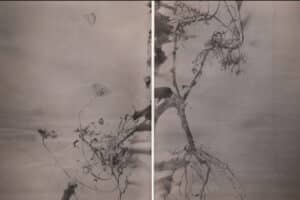 Danilo Espinoza, destacado artista visual y académico en la Escuela de Arte UC Chile, presenta a través de su obra una profunda reflexión sobre la fragilidad de la naturaleza y su relación con la vida y la muerte, utilizando como medio principal el humo sobre papel. Espinoza explora la vida oculta y efímera de insectos y plantas, organismos que, aunque frecuentemente ignorados, son fundamentales para el equilibrio ecológico. El humo, controlado, pero también sujeto al azar, se convierte en una metáfora de la transitoriedad y la delicadeza de la existencia, recordándonos la impermanencia de todo lo natural y la necesidad de observar con atención aquello que usualmente pasa desapercibido en nuestro entorno.